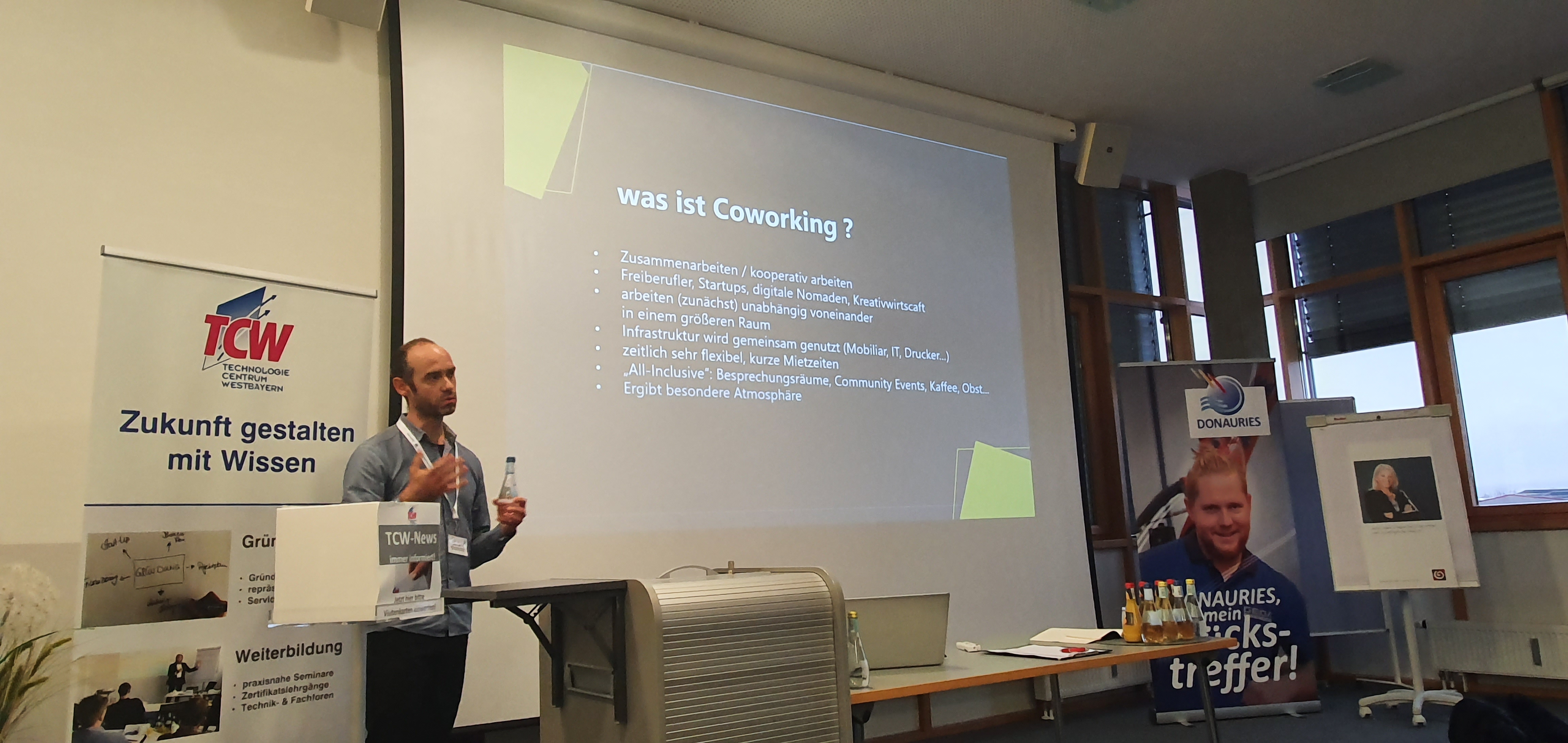 Im Anschluss stellte Tobias Seemiller (Accelerator- und Projektmanager, Digitales Zentrum Schwaben) das roots-Coworking vor. Ein neuer Arbeitstrend im „neuen Arbeiten“ ist das Coworking. Immer mehr GründerInnen, Freelancer und Kreative nutzen diese Form des Arbeitens, um in einer inspirierenden Umgebung kreativ und produktiv zu sein. Sogenannte Coworking-Spaces bieten flexible Plätze zum Arbeiten, Austauschen und Vernetzen.