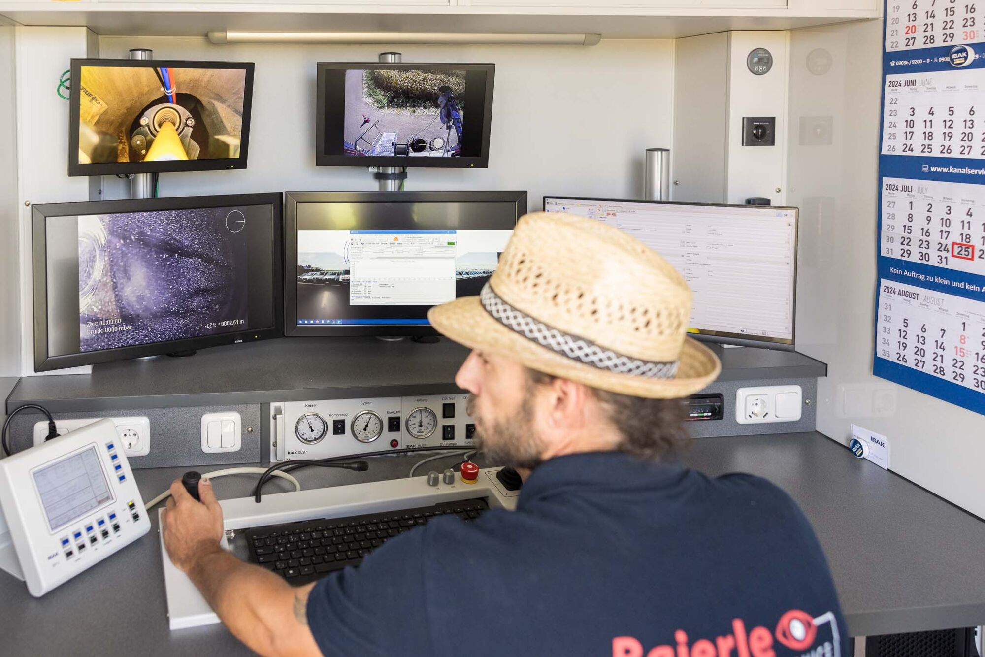 Auch den Jüngsten der Mitarbeiterinnen und Mitarbeiter im Alter von 19 bis 65 Jahren fehlt es bei der Baierle Kanalservice GmbH an nichts. „Wir bieten dem Nachwuchs modern ausgerüstete Inspektionsfahrzeuge, welche einen Büroarbeitsplatz an der frischen Luft ermöglichen“, führt Jürgen Baierle zum unternehmenseigenen „Outdoor-Office“ aus. Wer sich hier als Umwelttechnologe/-in für Rohrleitungsnetze und Industrieanlagen ausbilden lässt, den erwartet ein abwechslungsreicher Arbeitstag mit netten Kolleginnen und Kollegen, Fahrten durch viele schöne Ortschaften sowie das Erlernen modernster Technologien. Anders als viele annehmen, bleiben Hände und Kleidung während der meisten Kanalarbeiten sauber, denn den Großteil der „Drecksarbeit“ erledigen Hochleistungskameras. Wenn etwas repariert werden muss, kommen ferngesteuerte Werkzeuge zum Einsatz. Der Mensch, der sie bedient, sitzt während seiner Arbeitszeit meist bequem an den Monitoren.
