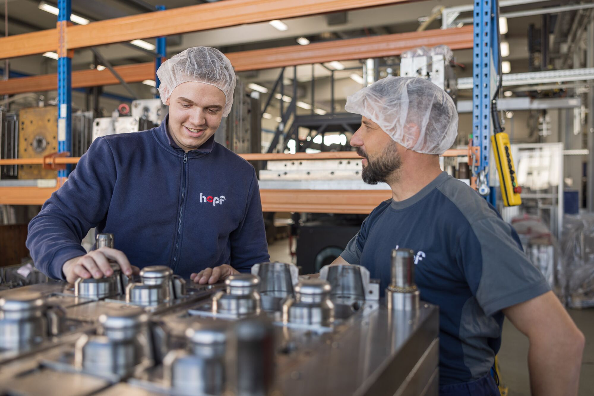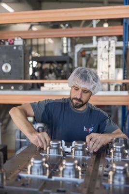 Wer an zukunftsorientierten Berufen interessiert und zudem praktisch, technisch und kreativ veranlagt ist, findet bei Hopf Packaging die richtige Ausbildungsstelle. Von 124 Beschäftigten befinden sich vier in der Ausbildung, insgesamt bildet das Unternehmen in acht Berufen aus (alle m/w/d): Industriemechaniker, Kunststoff-und Kautschuktechnologe, Werkzeugmechaniker, Zerspanungsmechaniker, Maschinen- und Anlagenführer, Fachinformatiker für Systemintegration sowie Informatik- oder Industriekaufleute. Junge Menschen können hier vieles lernen, und das tun sie auch. Ein Auszubildender zum Verfahrensmechaniker berichtet: „Man macht nicht jeden Tag das Gleiche. Man wird auch vor Herausforderungen gestellt, bei denen man kreativ sein muss.“ Diese Aussage deckt sich mit der Bewertung eines Mitarbeiters auf einem öffentlichen Internetportal: „Die täglichen Aufgaben im Unternehmen sind fördernd, interessant und abwechslungsreich, die internationalen Kontakte spannend. Auch die allgemeine Arbeitsatmosphäre wird als freundlich und respektvoll beschrieben, Vorgesetzte haben stets ein offenes Ohr und verhalten sich hilfsbereit und fair.“