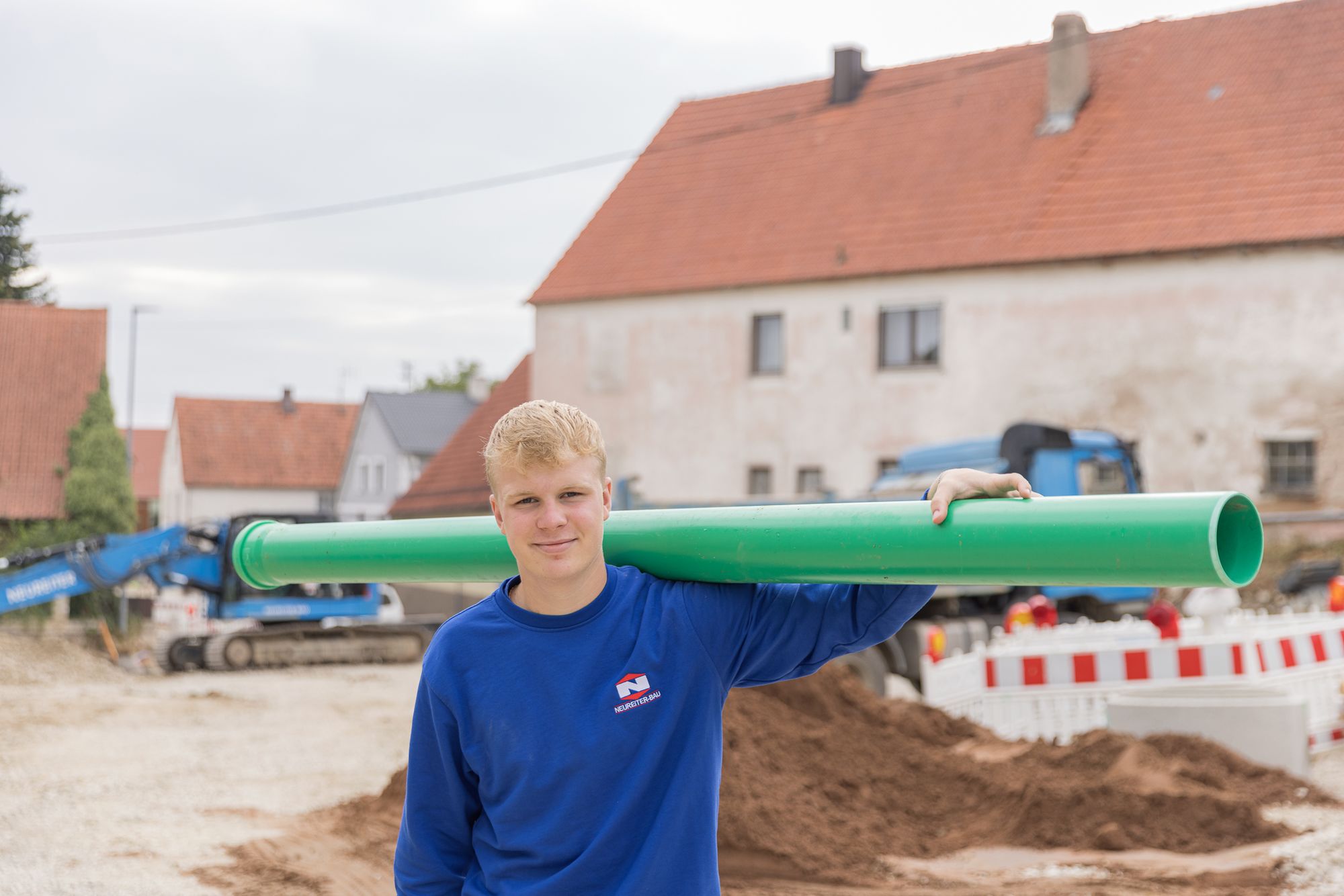 Nachhaltig ist auch das Stichwort im Bereich Ausbildung bei der Neureiter GmbH. Gemeinsam mit dem Gewerbeverein Marktplatz Wallerstein e.V. organisiert das Bauunternehmen etwa den Tag der Betriebe, bei dem Schüler die teilnehmenden Unternehmen besuchen und einen Einblick in deren Arbeitsalltag bekommen können. Auch bei der Ausbildungsmesse „Ausbildung regional – stark im Handwerk“, die jährlich in der Mehrzweckhalle Wallerstein stattfindet, ist die Neureiter GmbH dabei. 2022 bei der sechsten Ausgabe der Messe war das Unternehmen wieder mit seinen Auszubildenden und einem Stand vertreten.